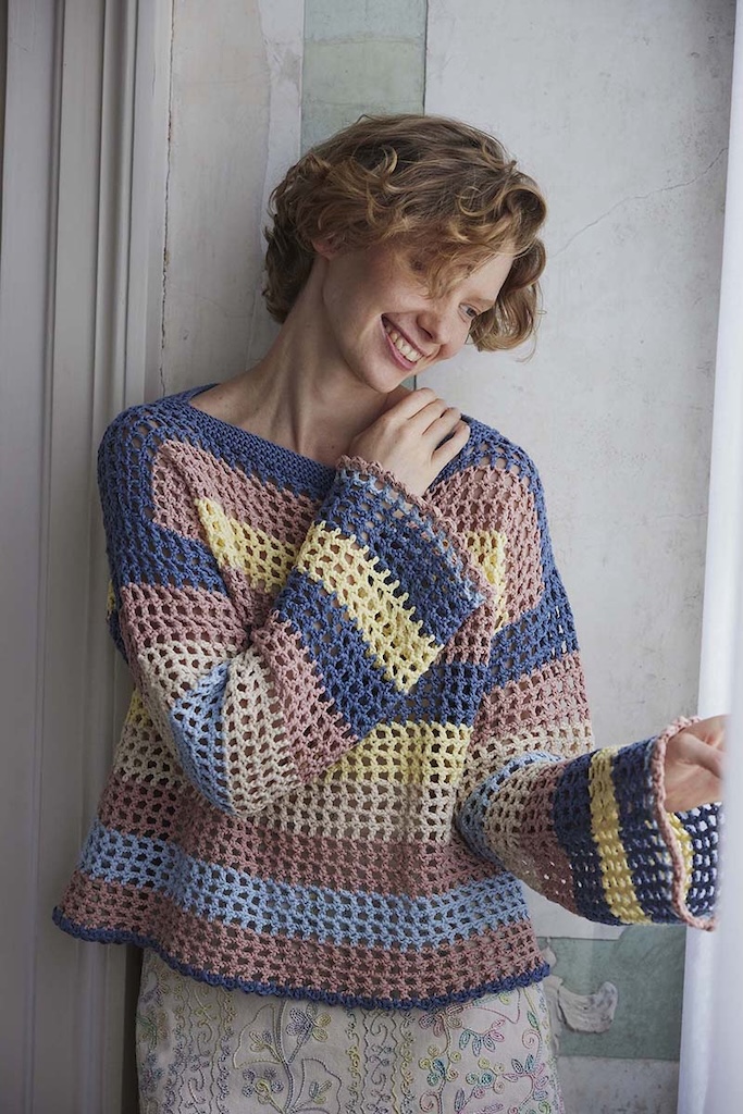 Virkad tröja i dubbelt garn med ränder
